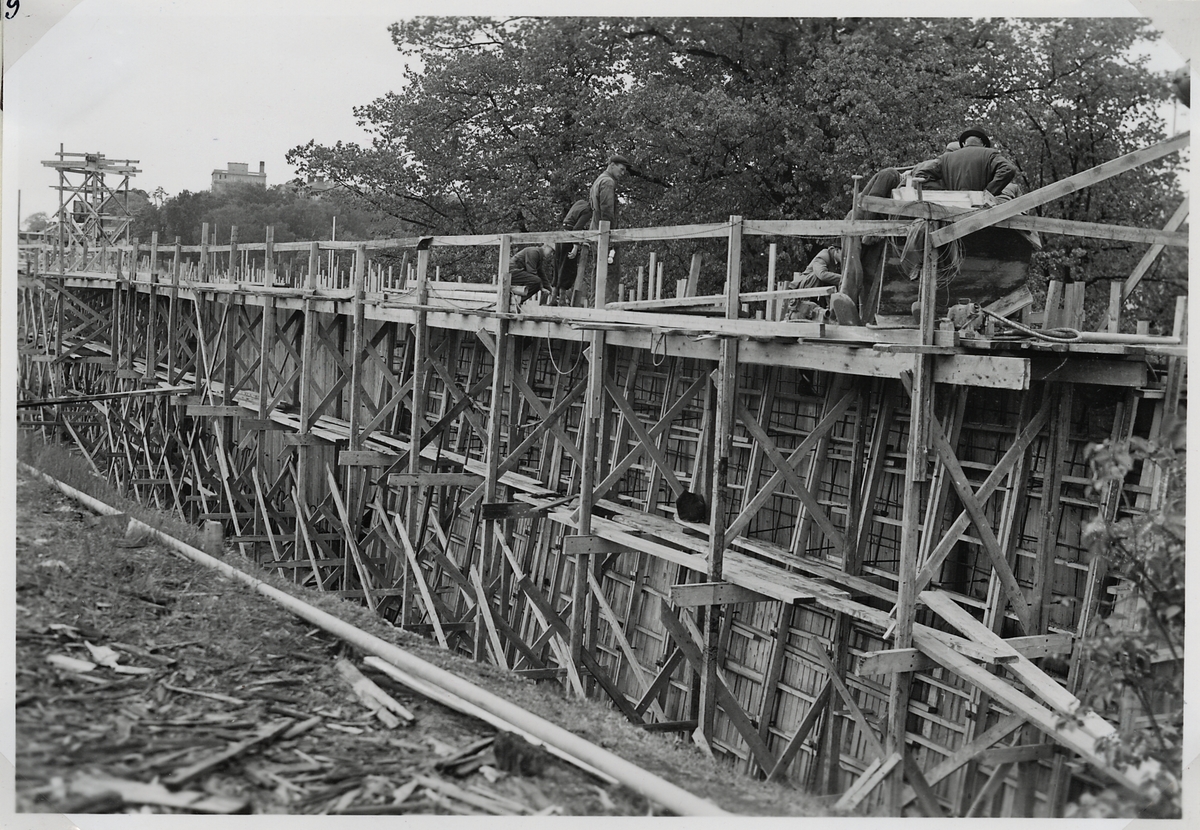 Uppförande av stödmur för järnvägsbanken vid byggnationen av ny järnvägsviadukt över Norrtullsgatan. Belägen ca 100 m öster om östra landfästet i nya vidaukten. Gjutning av östra delen.