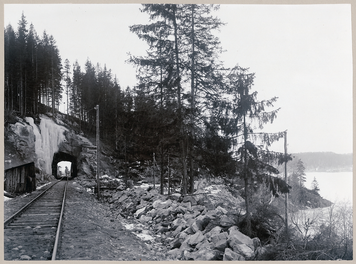 Järnvägstunnel vid Marbäck bredvid sjön Åsunden.