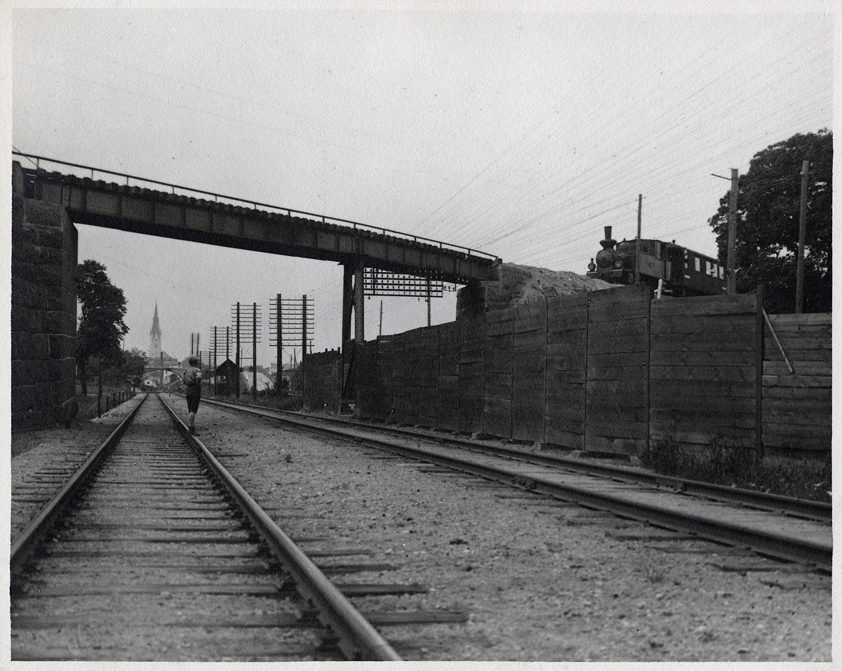 Viadukten över landsväg och SJ dubbelspår vid Ladugårdsbacke vid Linköping.