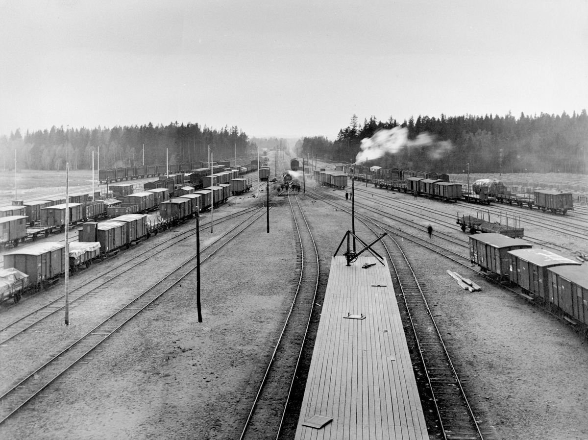Utsikt från omlastningsmagasinet, Nässjö bangård mot väster.