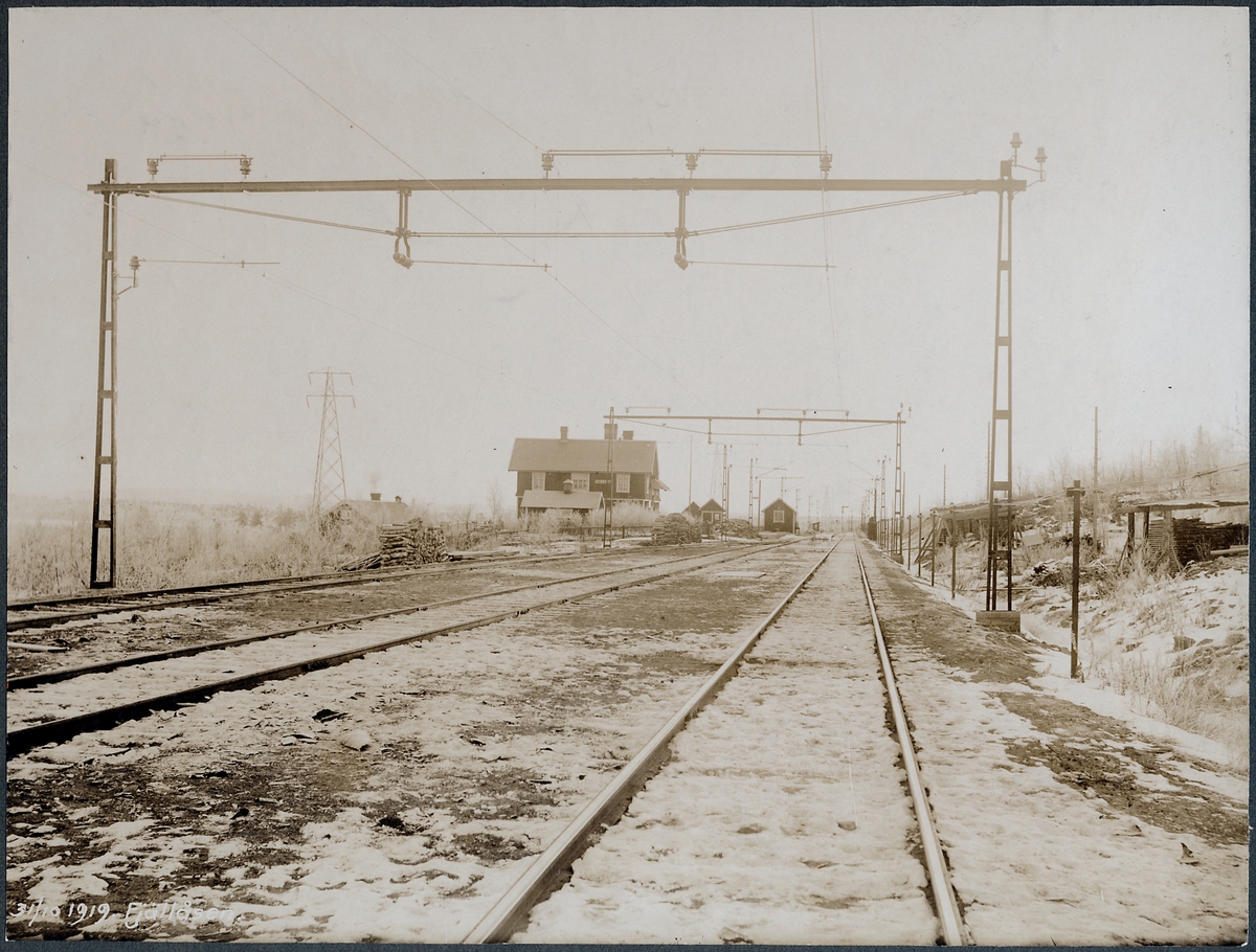 Titel: Fjällåsen station med kontaktledningsbryggor.