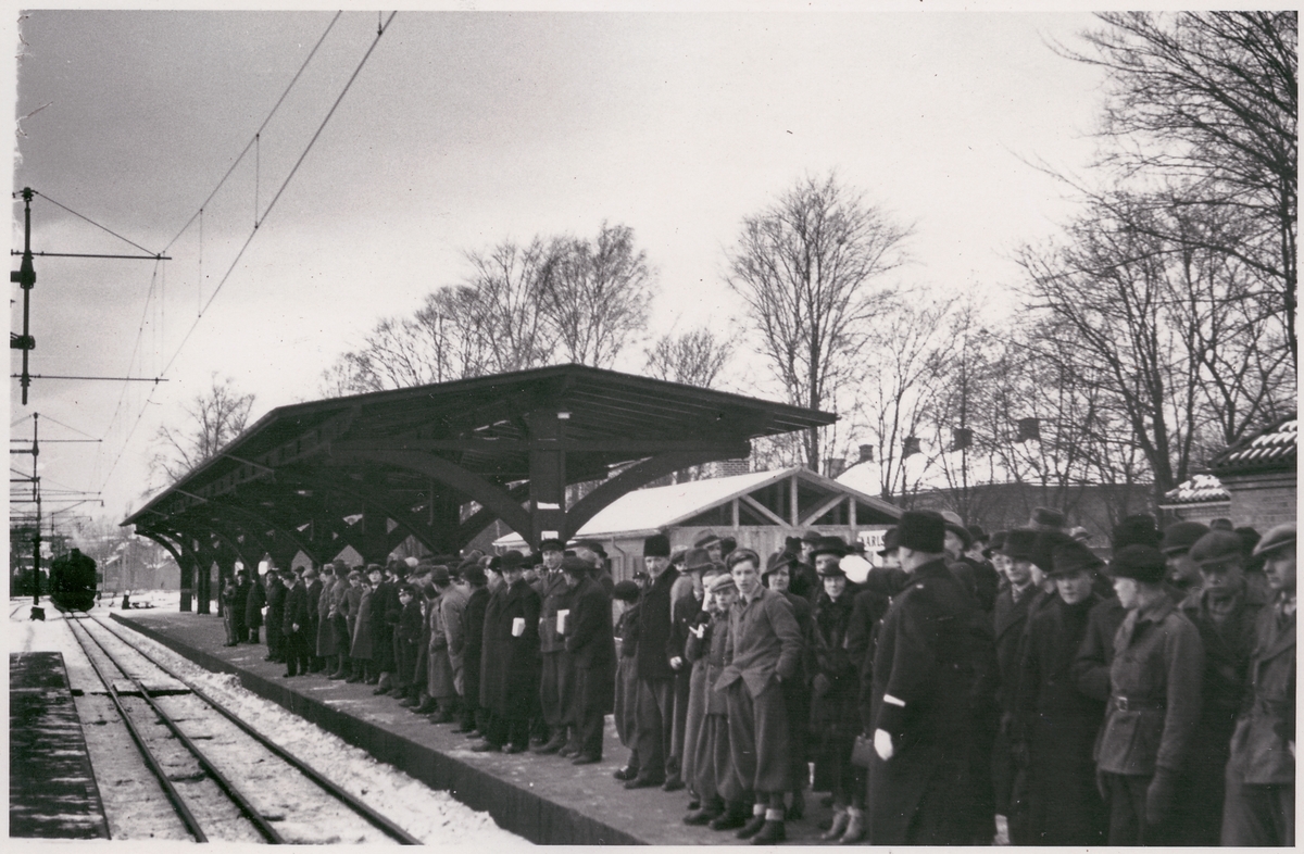 Människor väntar på att få se det första eldrivna loket på Karlstads Central.