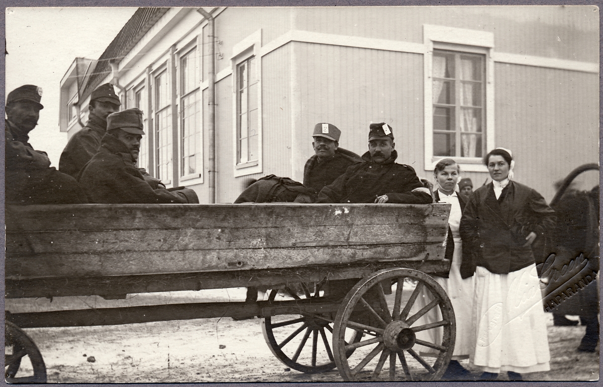Skadade soldater transporteras genom Haparanda under Första världskriget.
