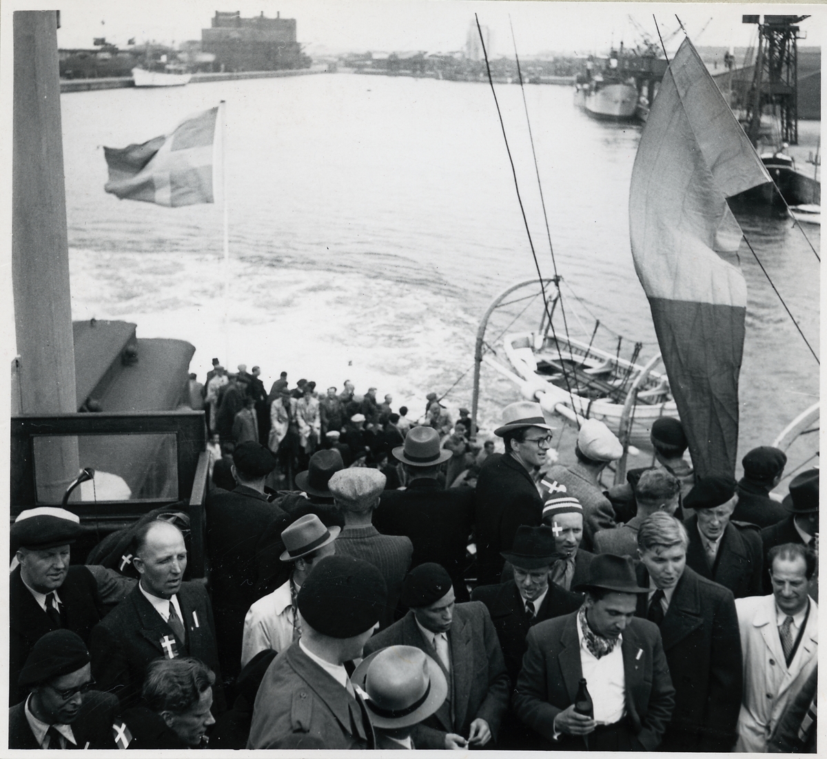 Danska flyktingar ankommer Köpenhamn på tågfärjan "Malmö".