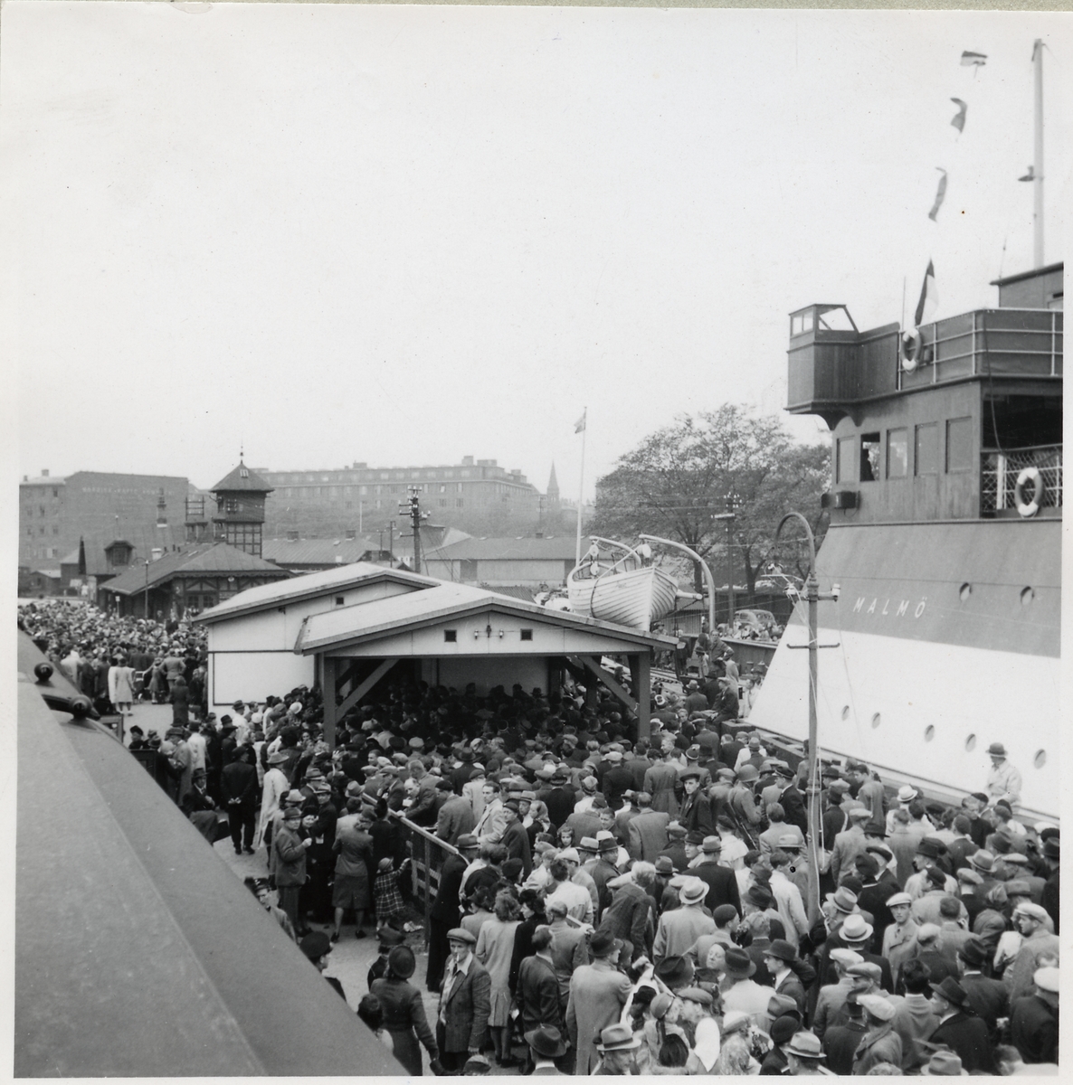 Danska flyktingar ankommer Köpenhamn på tågfärjan "Malmö".