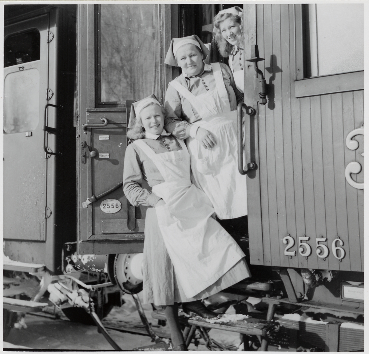 Kvinnor från lottakåren. Statens Järnvägar, SJ C08 2556.