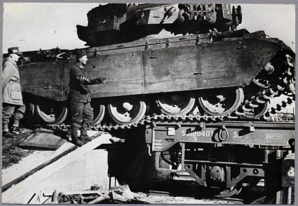 Statens Järnvägar, SJ Sdu 100407. Förflyttning av stridsvagn.