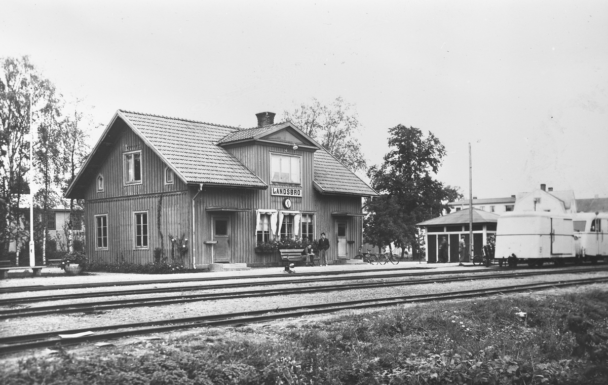 Landsbro station. Namnet var före 1/6 1895 LANNASKEDE. Station anlagd 1885. En- och enhalvvånings stationshus i trä