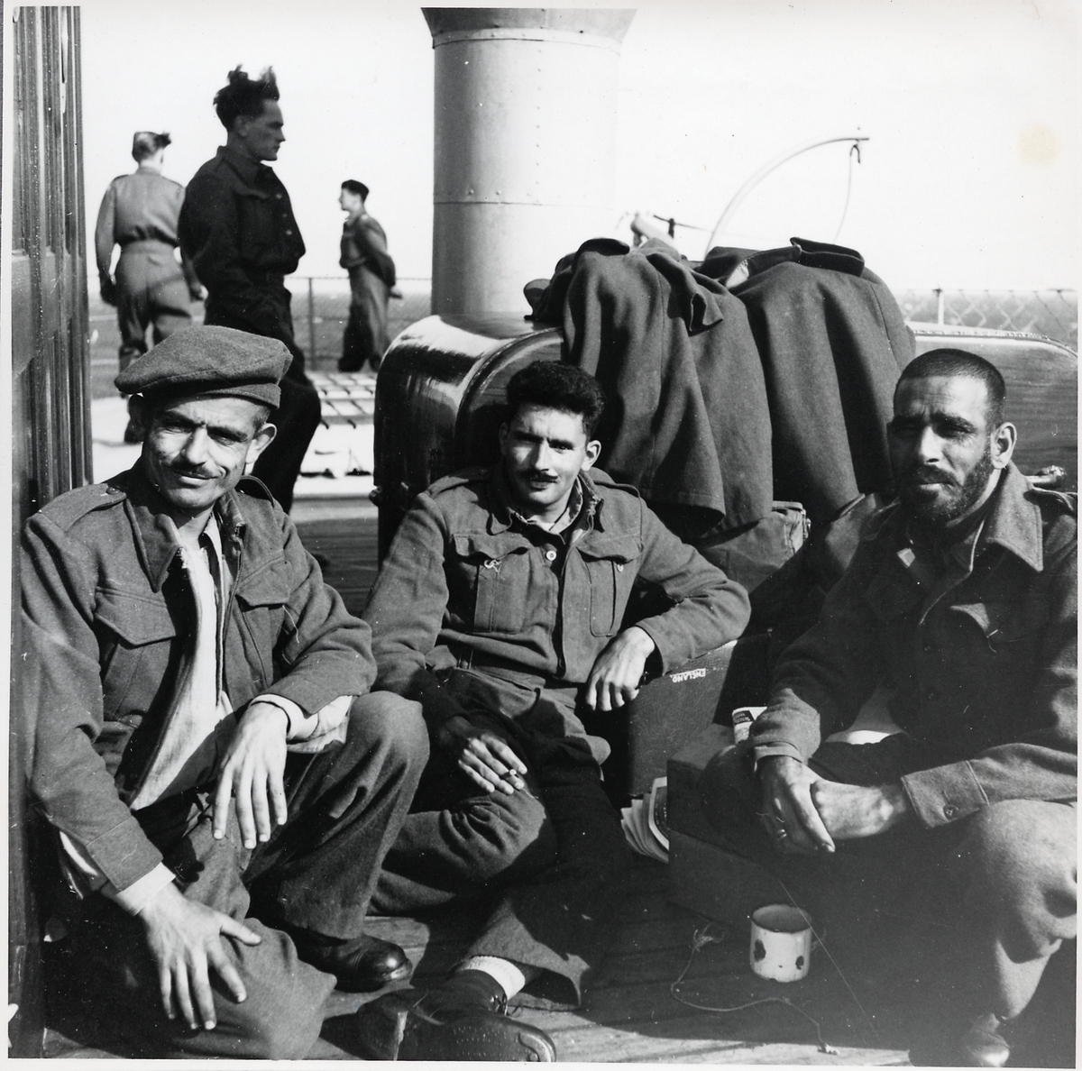 Några krigsfångar som slagit sig ner på S/S Drottning Wictoria.