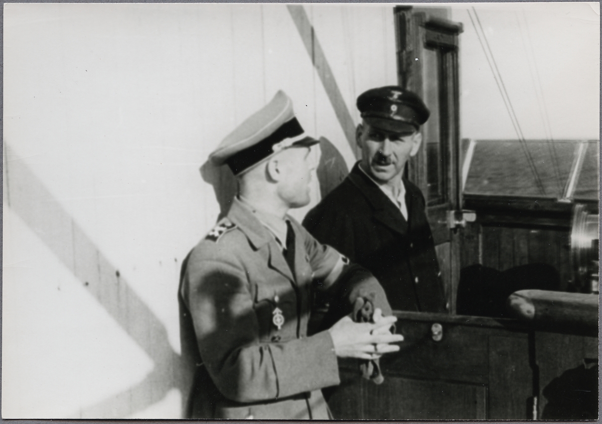 Titel: Tysk politiker och färjebefäl samspråkar.