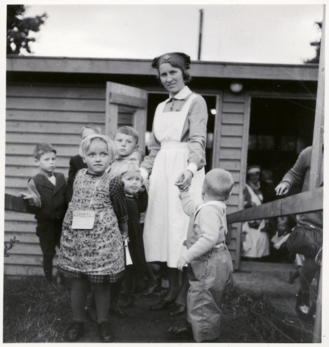 Barn från Finland i samband med barnevakueringen under kriget, här vid Krylbo station.