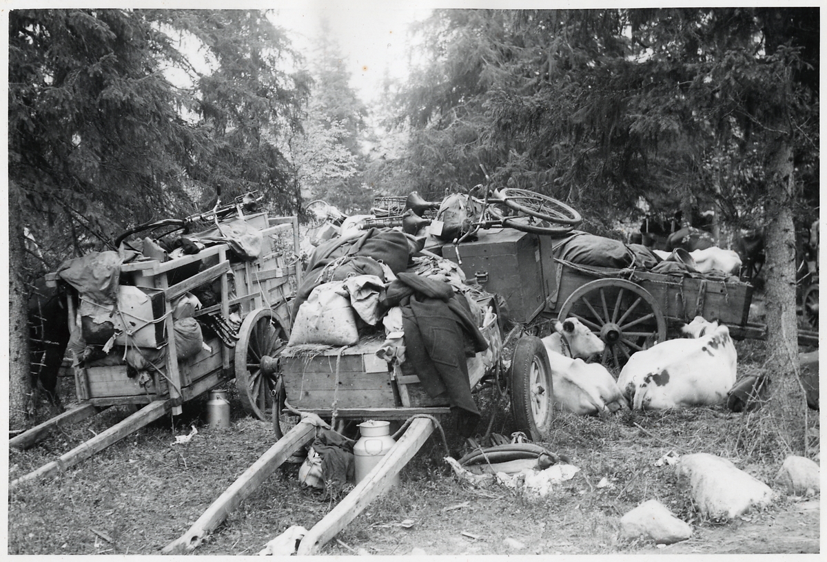 Kärror lastade med finska flyktingars tillhörigheter, Haparanda, hösten 1944.