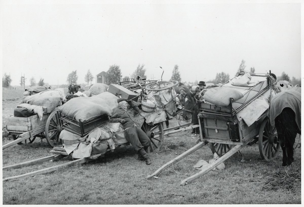 Finska flyktingar i Haparanda, hösten 1944. Kärror med resgods.
