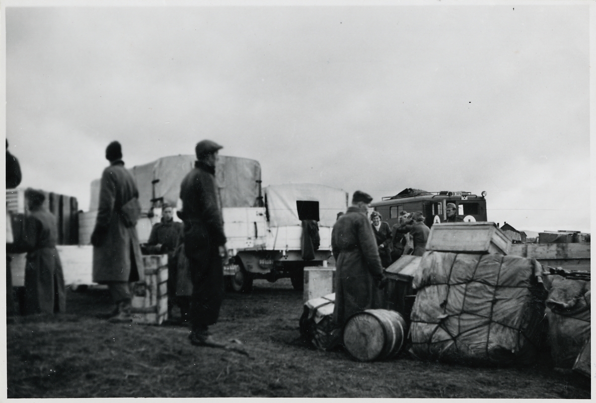 Finska flyktingar i Kuttainen, hösten 1944. Resgodshantering.