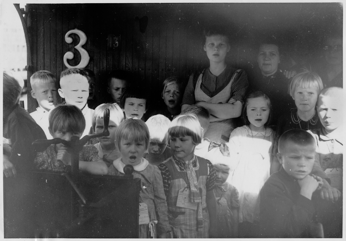 Finsk barntransport över Holmsund-Umeå, hösten 1944. Sjungande barn.