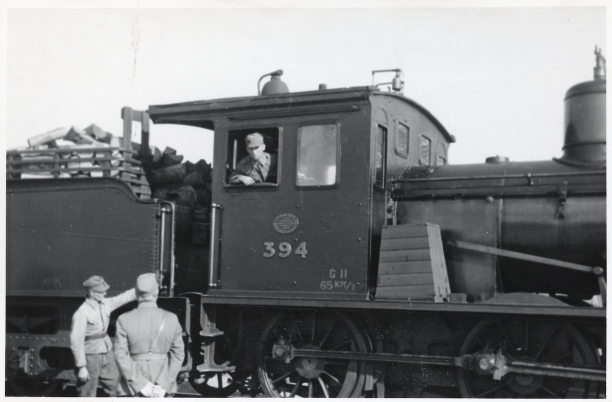 Militärtåg på Murmanskbanan, som är på väg till Karkumäki. Ånglok G11 394.