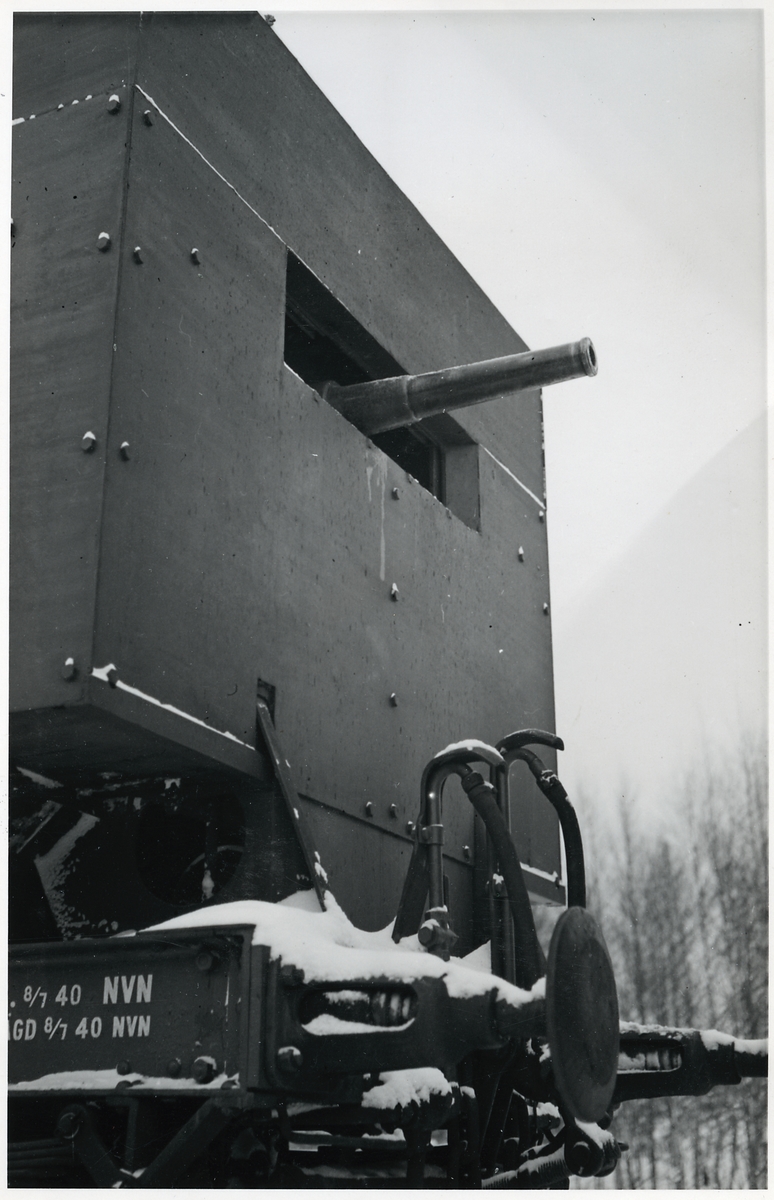 Pansartåg 2 BODEN vid Riksgränsen. Ombyggd malmvagn, Statens Järnvägar, SJ Mas 15817.