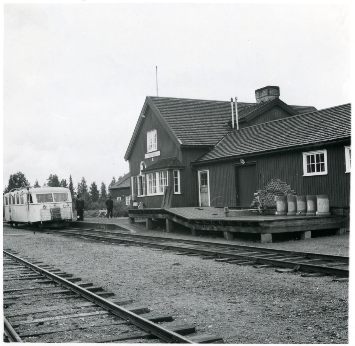 Moskosel station år 1946 med en rälsbuss av Hilding Carlsson modell.