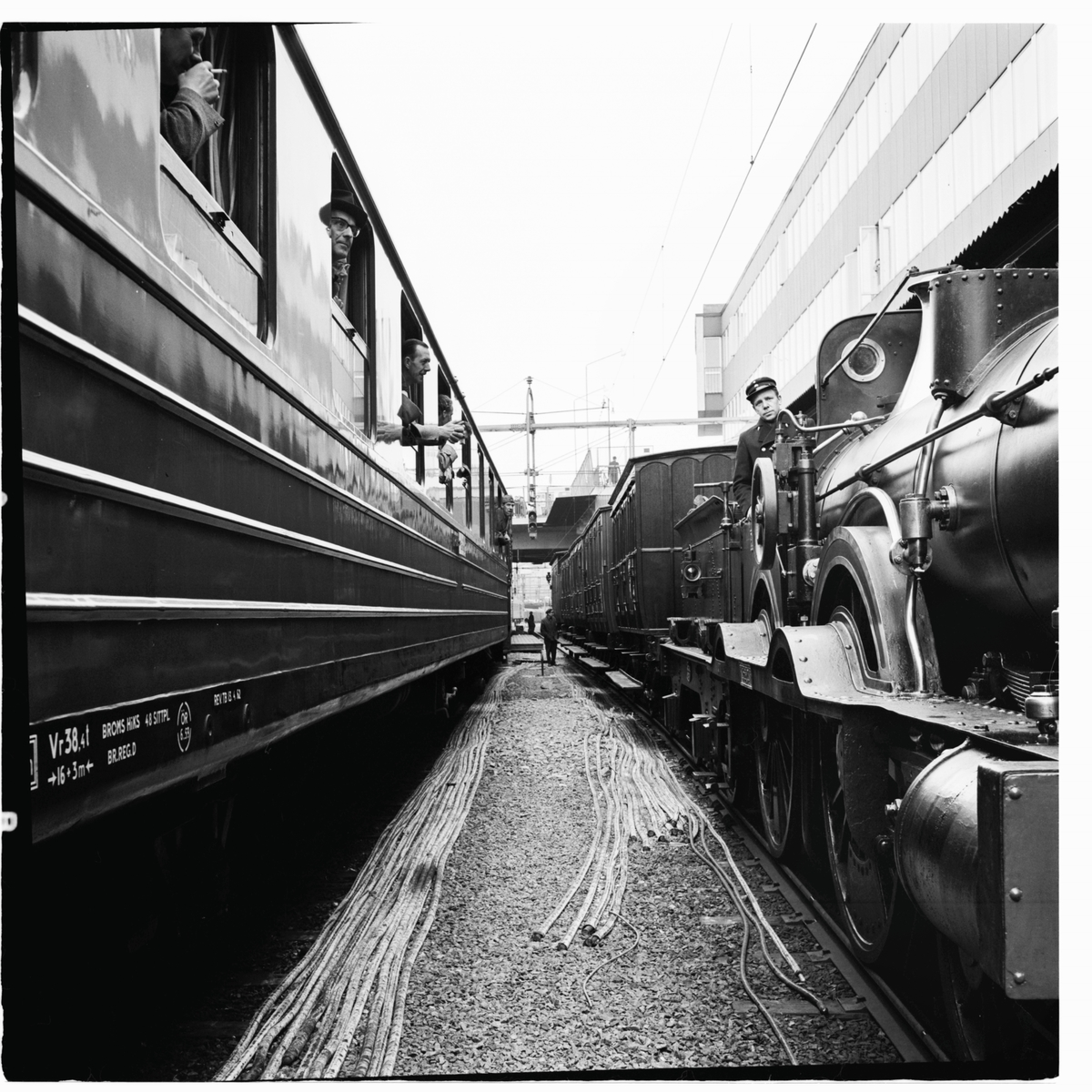 Historiska tågets resa från Stockholm till Göteborg för invigningen av Tåg 62. På bilden syns lok nummer 3 "Prins August", senare Statens Järnvägar SJ Bb 43. Köping Hults Järnväg KHJ CD 13. Statens Järnvägar SJ C 182. Statens Järnvägar SJ AB 289. Statens Järnvägar SJ A 103. Statens Järnvägar SJ C2b 329
