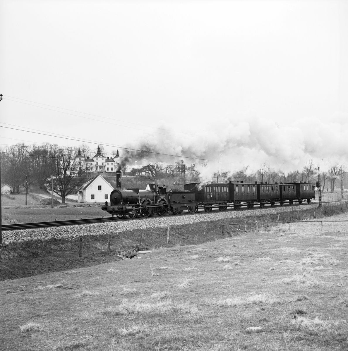Historiska tågets resa från Stockholm till Göteborg för invigningen av Tåg 62. Sträckan Flen-Katrineholm. SJ B 3 "Prins August". KHJ CD 13. SJ C 182. SJ AB 289. SJ A 103. SJ C2b 329. Stenhammars Slott