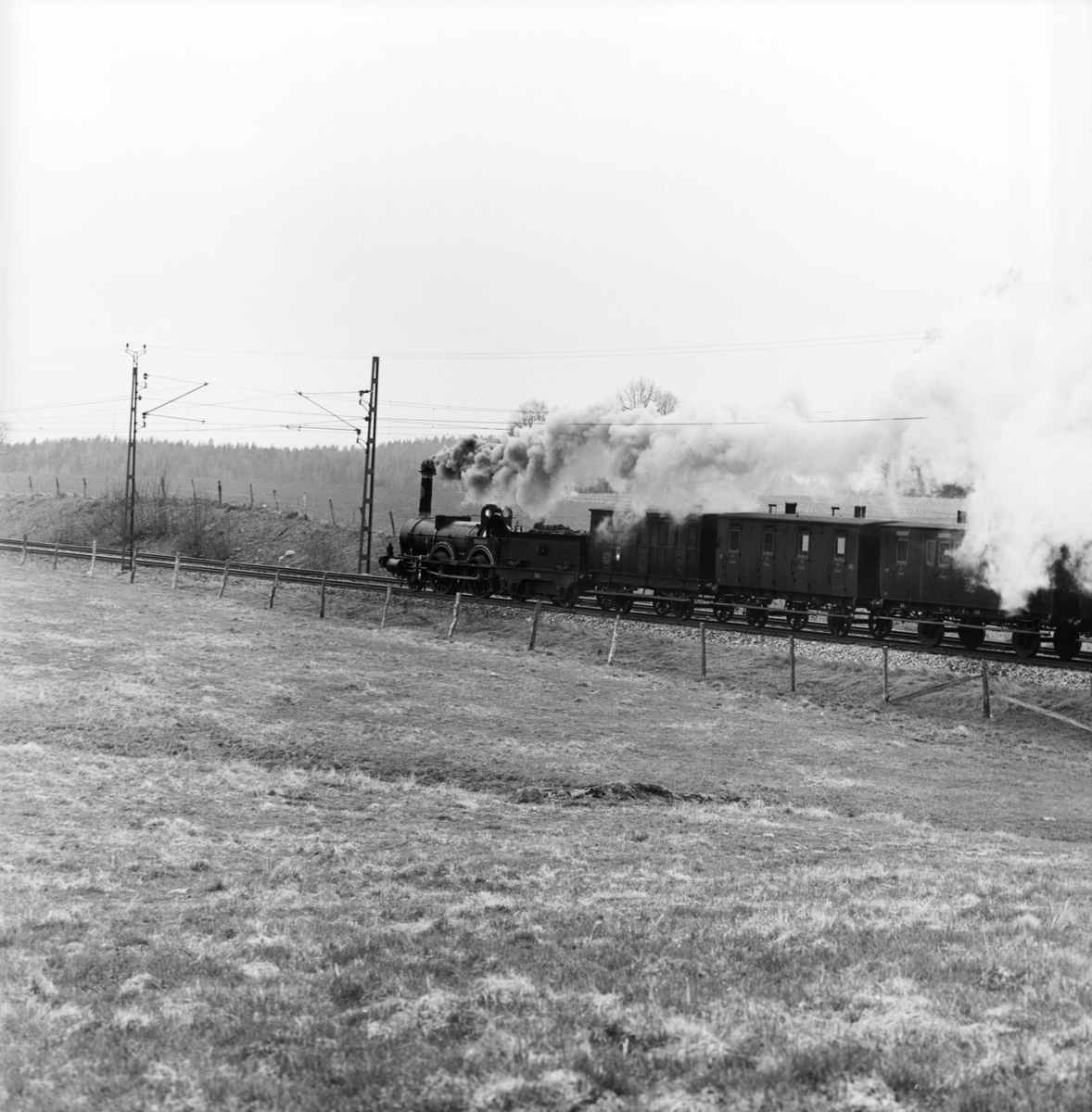 Historiska tågets resa från Stockholm till Göteborg för invigningen av Tåg 62. SJ B 3 "Prins August". KHJ CD 13. SJ C 182. SJ AB 289