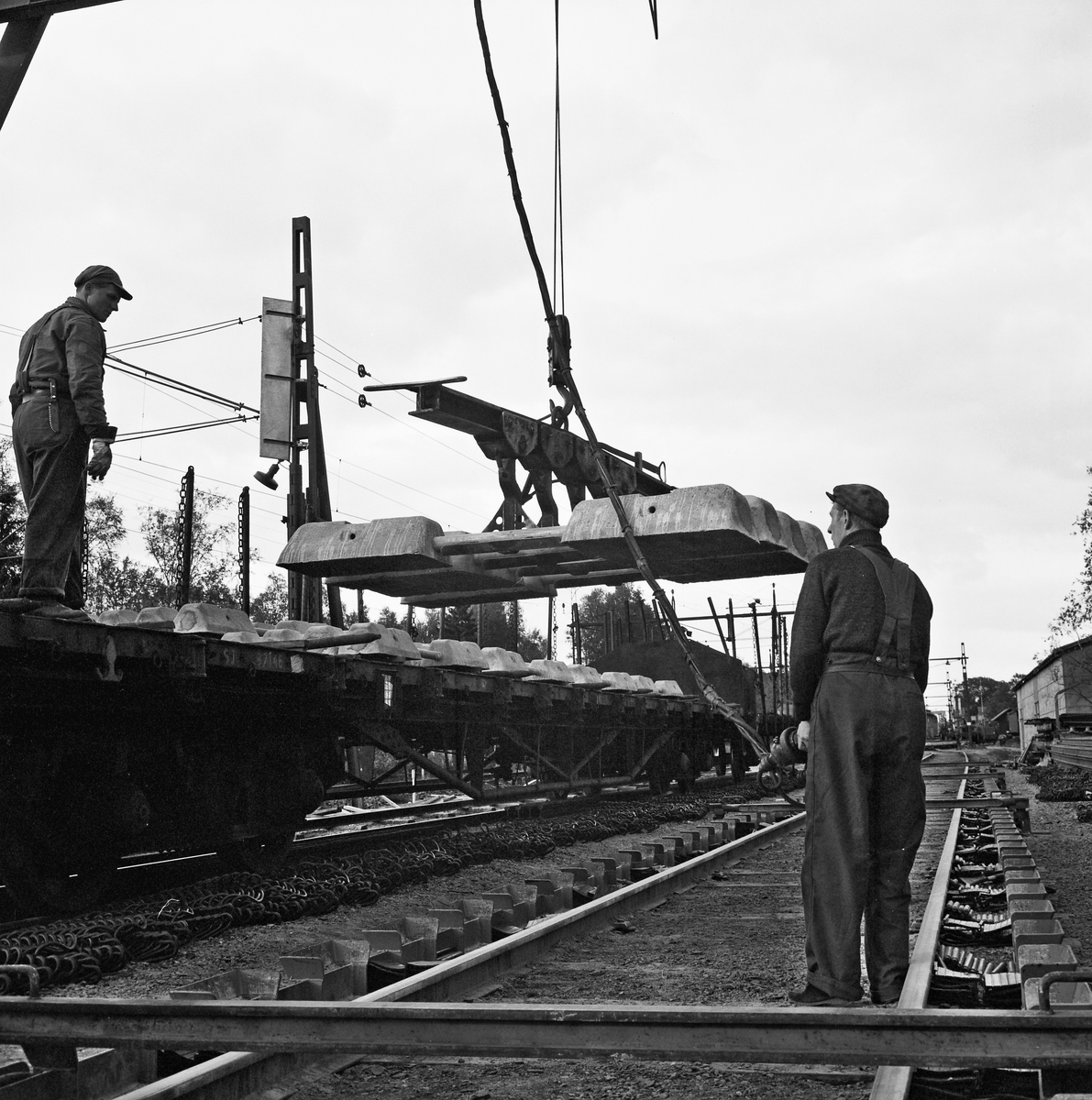 Spårarbete, Flisby-Solberga. Uttransport av färdigt spårspann