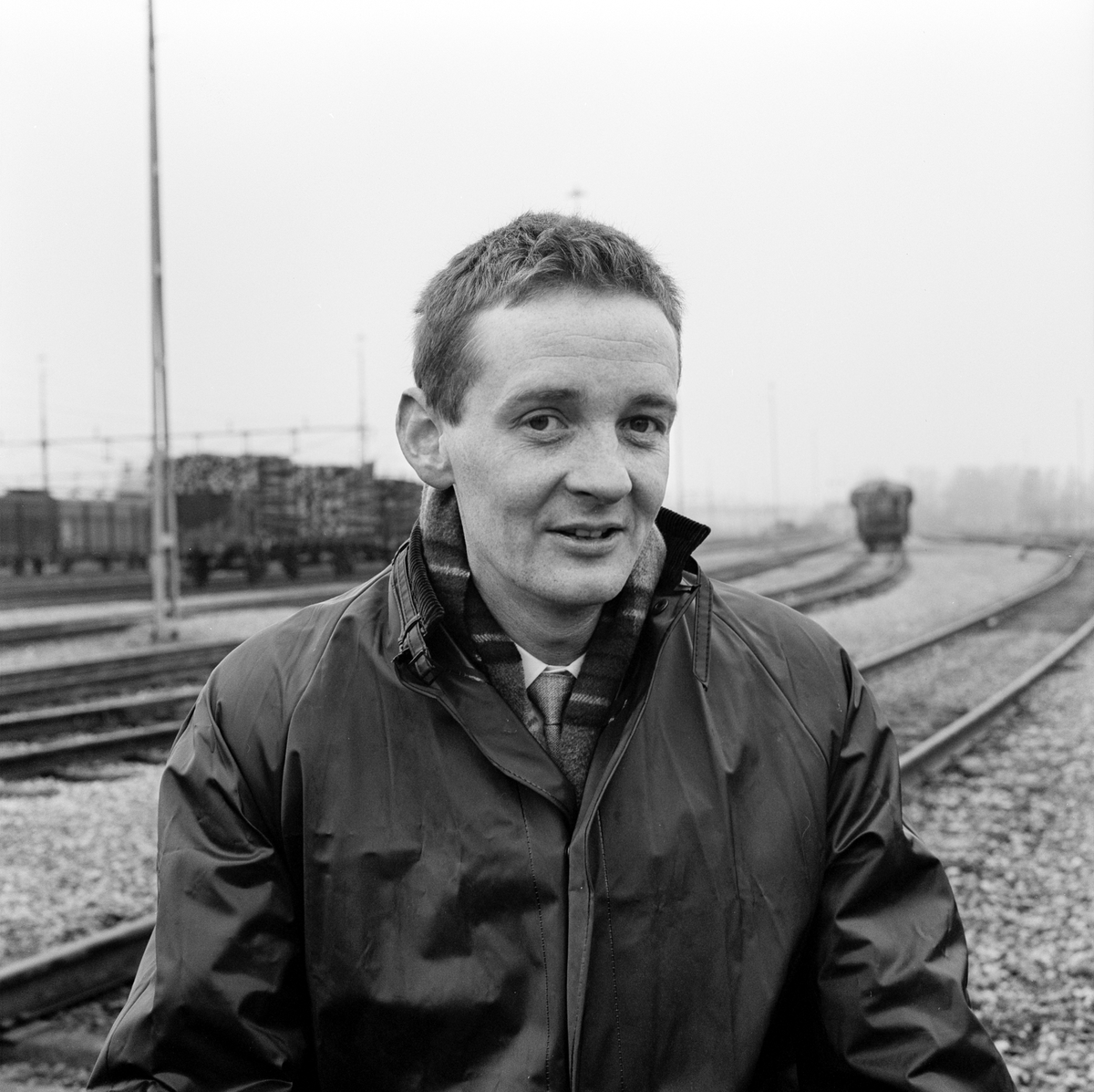 Civilingengör Henrik Danieli. Uppfinnare av spiralbroms och förhalningsspel. Monter på godsbangården i Gävle. Visningsdag 10/4-67