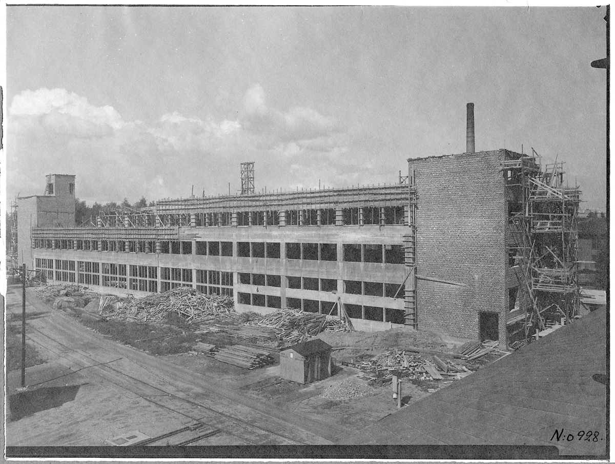 Titel: Snickeri och tapetserarverkstad under uppbyggnad. Centralverkstäderna, Örebro.
