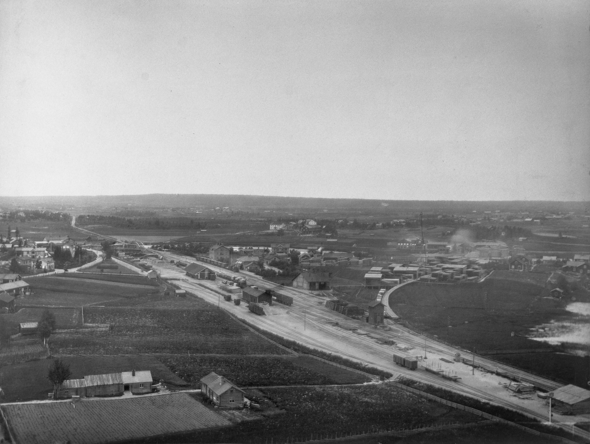 DONJ- och SJ- bangård, Ockelbo samhälle. Bilden tagen från kyrktornet.