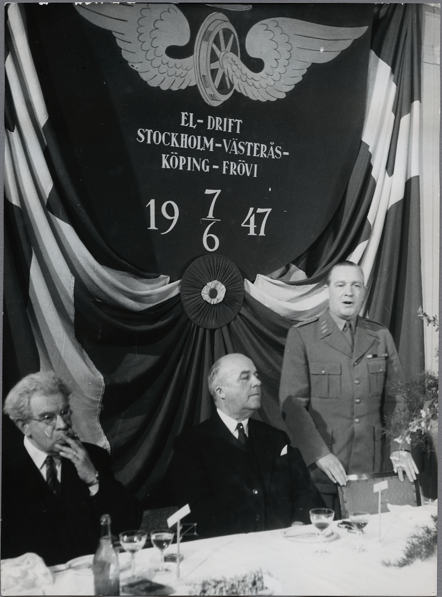 Invigningsmiddagen i Örebro med Landshövding Conrad Jonsson, Generaldirektör Gustaf Dahlbeck och Överbefälhavare Helge Jung.