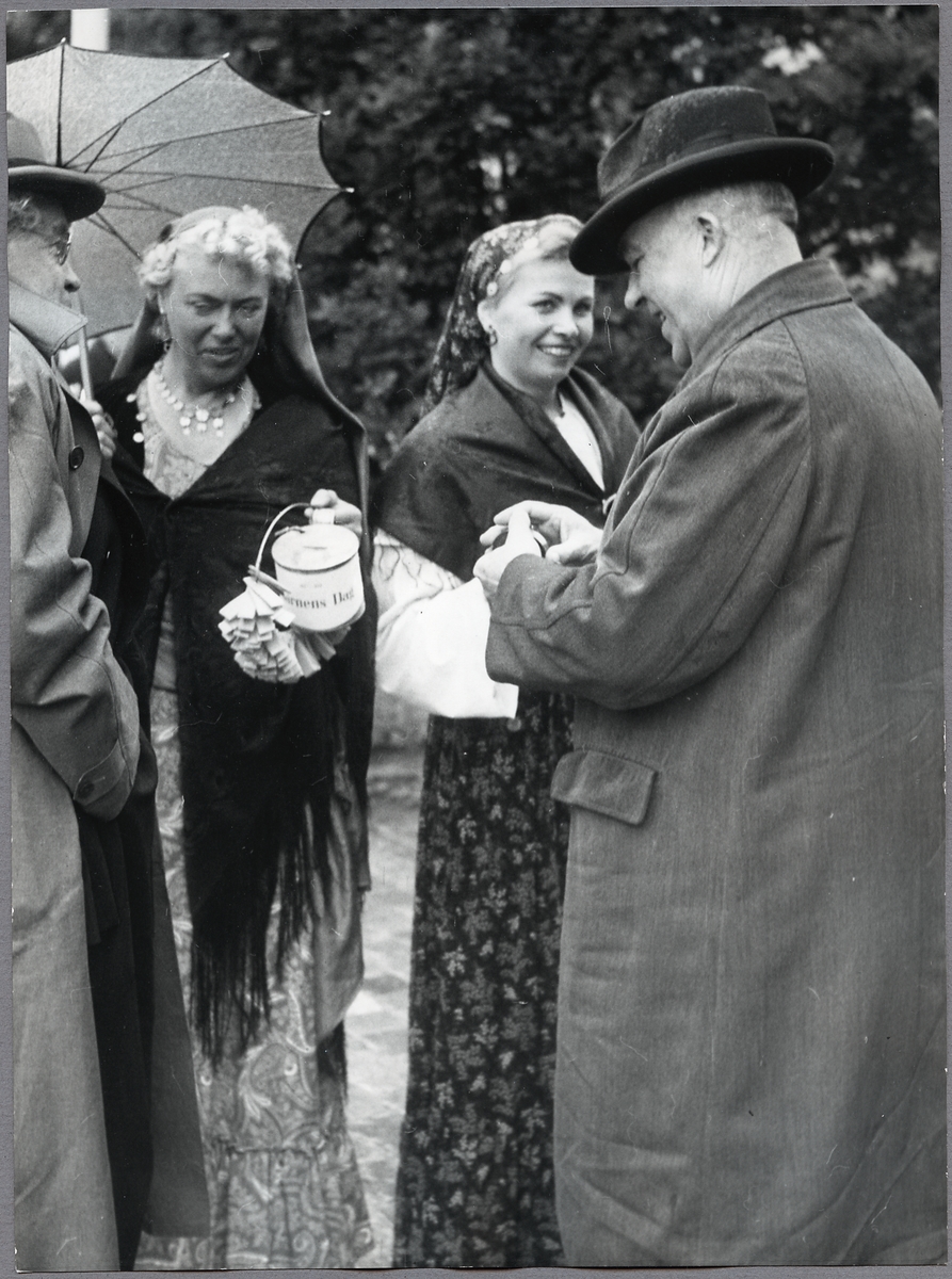 Generaldirektör Gustaf Dahlbeck och Landshövding Conrad Jonsson köper lotter.