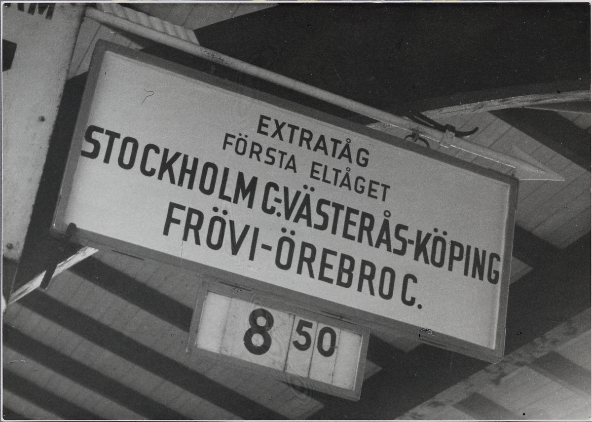 Titel: En skylt på en station någonstans på linjen Stockholm - Västerås - Örebro.