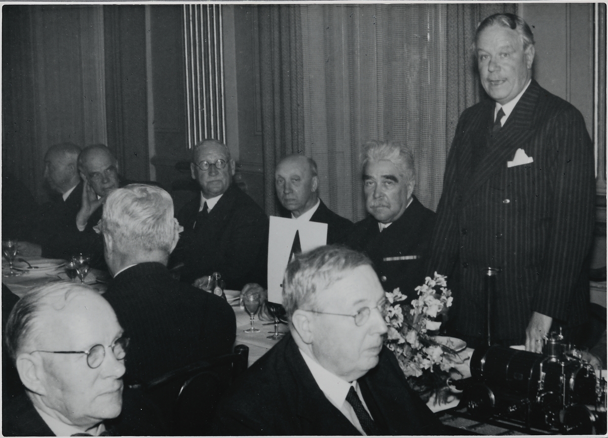 Ordföranden i T.G.O. styrelsen håller tal på invigningsmiddagen i Västerås.