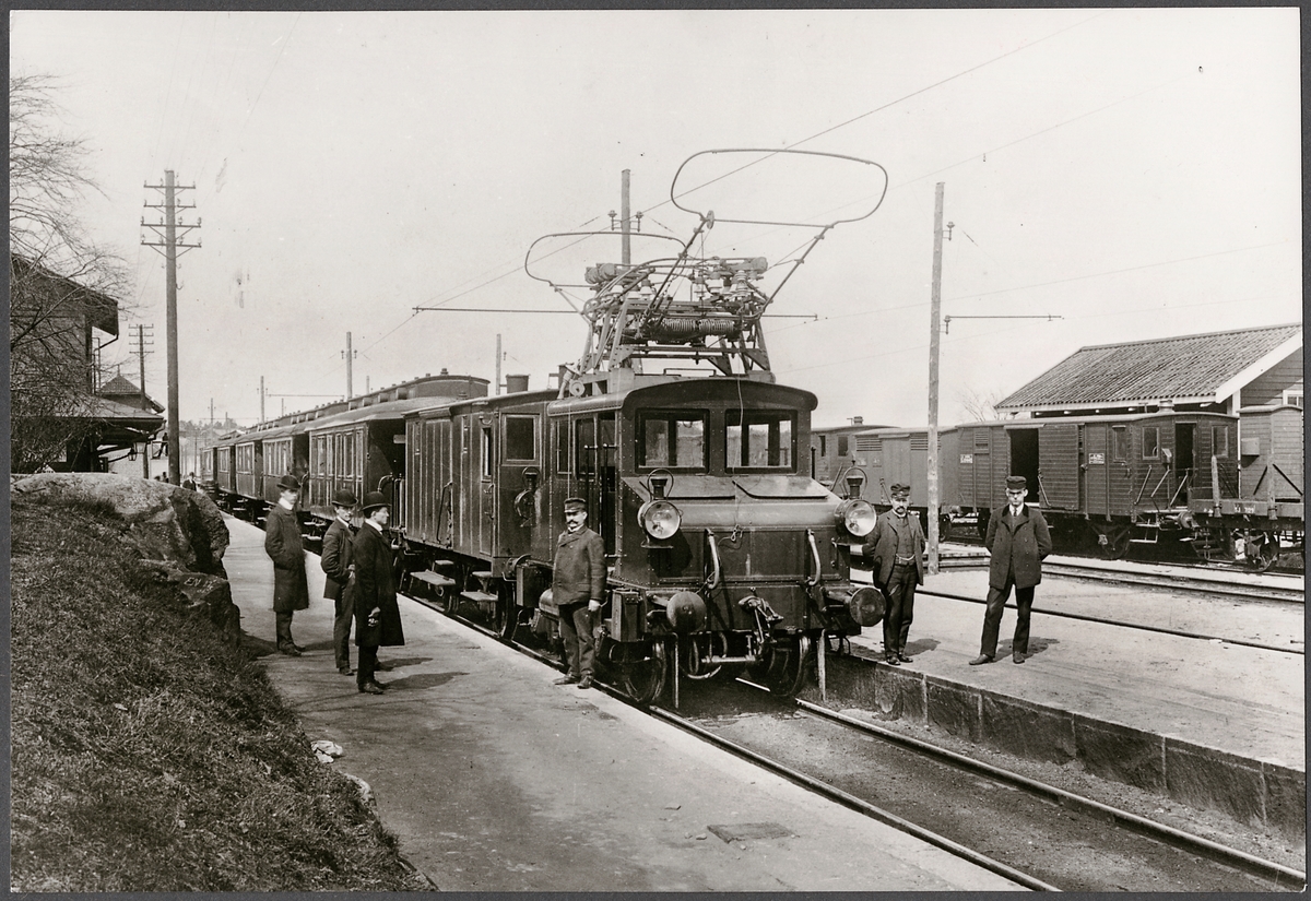 Lok nr 1 på provsträckan för elektriska försöksdriften vid Järva station.