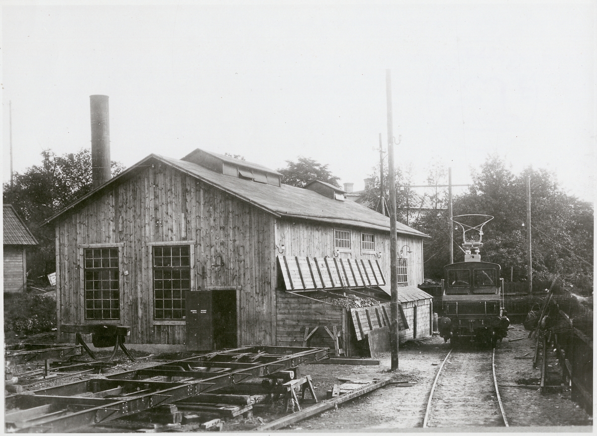 Den provisoriska kraftstationen samt Statens Järnvägar, SJ ellok 1 (Westinghouse-loket).