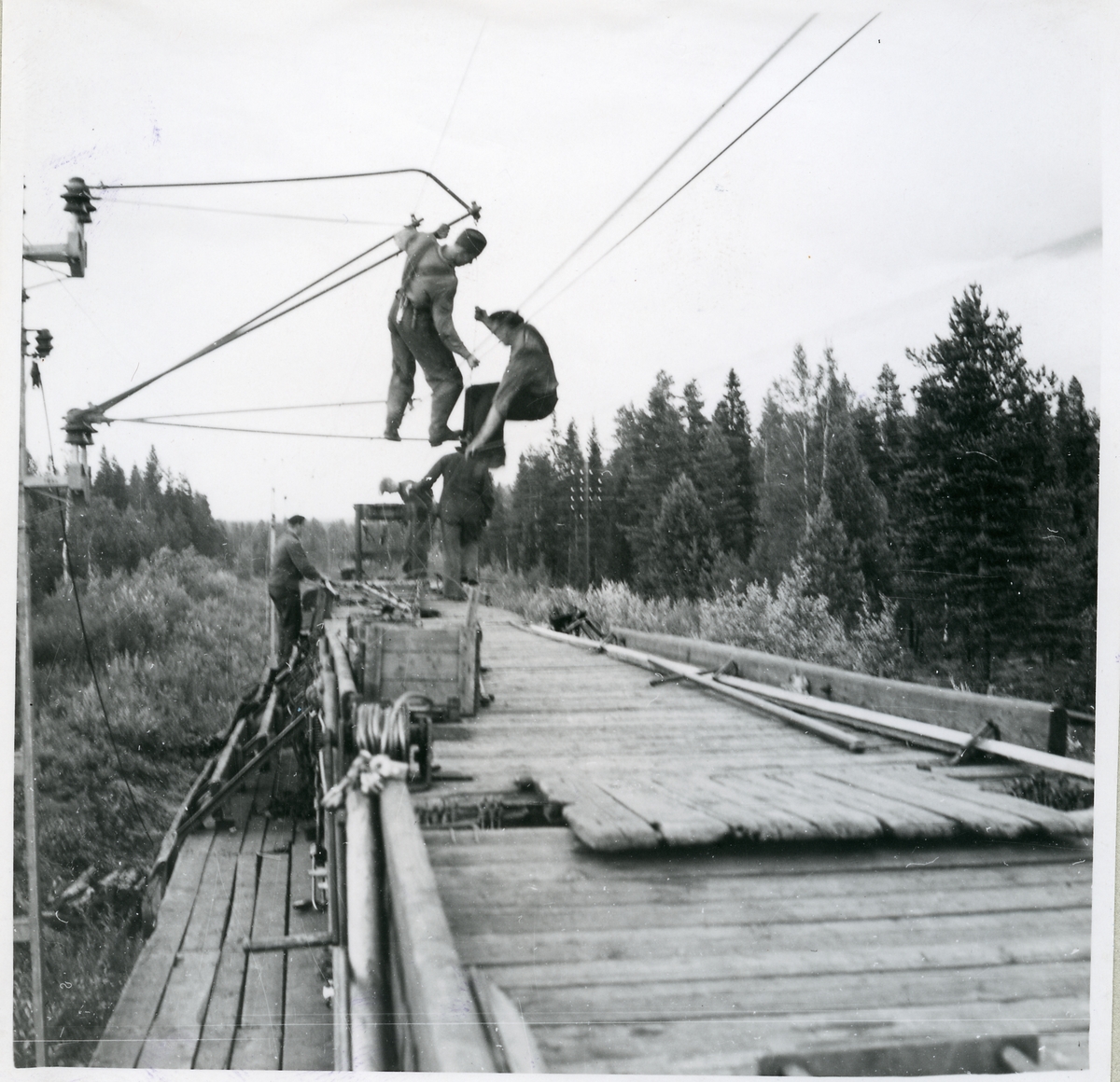 Ledningsmontage vid Hällnäs - Yttersjön på sträckan Vännäs - Boden.