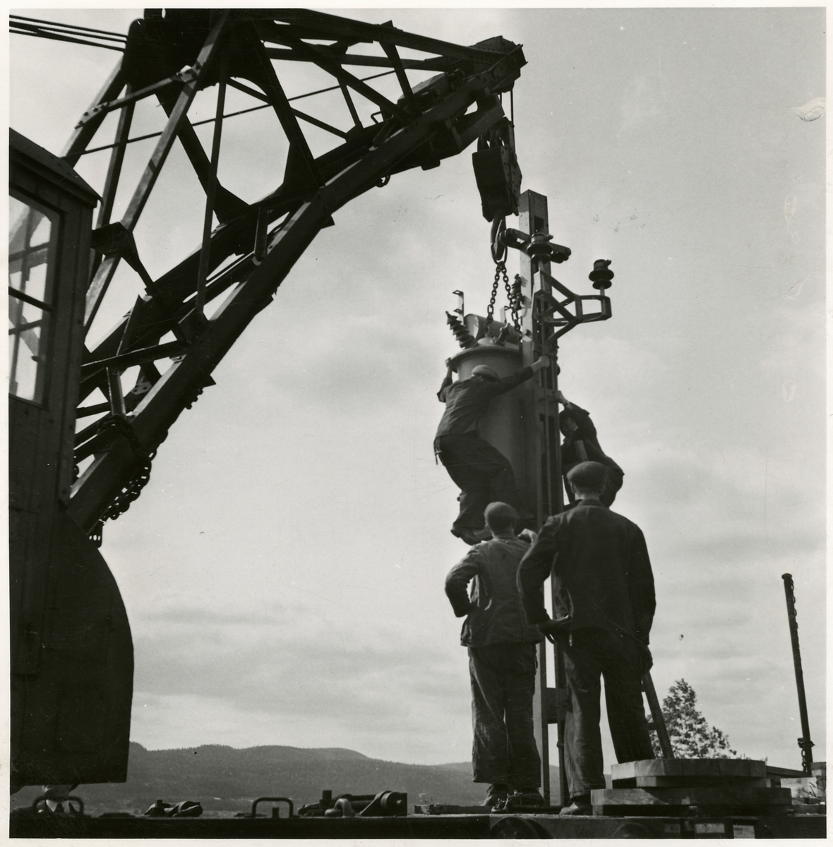 Elektrifieringen av sträckan Ånge - Sundsvall. . Lastning av järnvägstransformator.