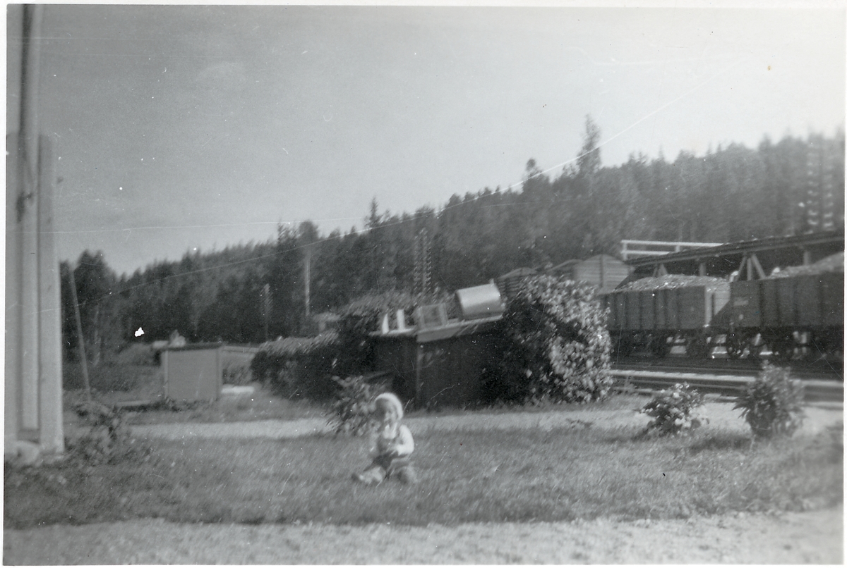 Långsjön, last- och mötesplats längs GDJ, Gävle - Dala Järnväg. Pojken på bilden är eventuellt Olle Braide, ett av Ingrids "barn". Ingrid är utbildad barnsköterska.