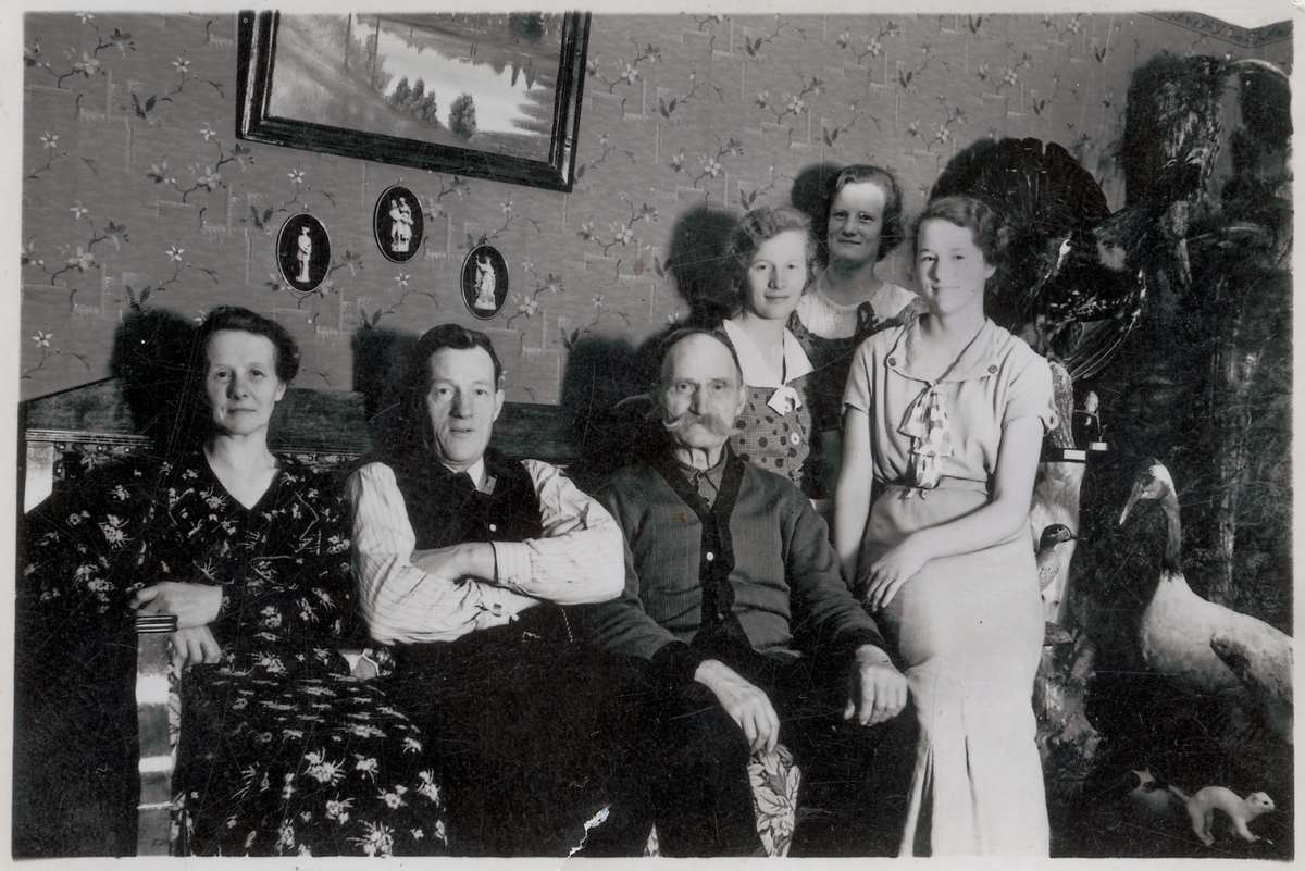 Från vänster: Tekla och Pelle Andersson, farfar Per Andersson och döttrarna Ingrid, Sigrid och Ingeborg.
