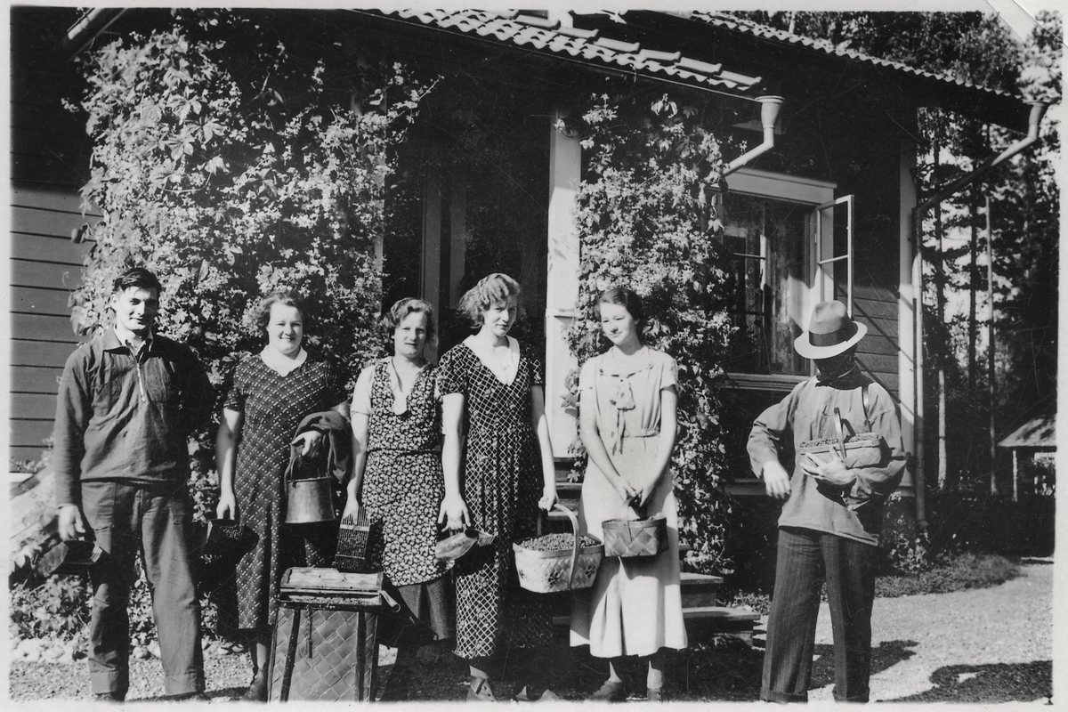 Bärpkockarlaget nyss hemkomna från Skatfallet. Från vänster: Per-Ols Erik Hansson, Västbyggeby och systrarna Astrid, Siri, Ingrid och Ingeborg samt Oskar Rapp.
