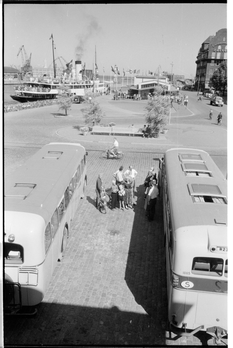 Statens Järnvägar, SJ-bussar i närheten av färjeterminal.