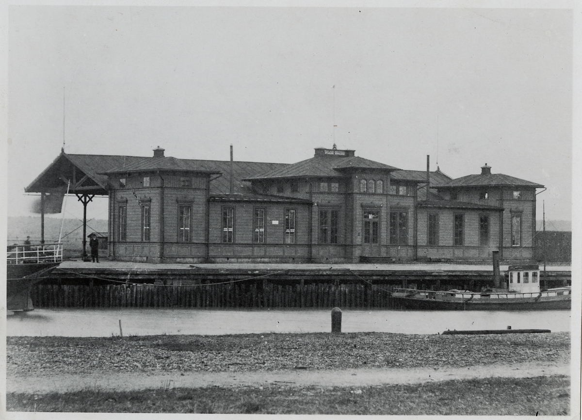 Köpings gamla stationshus, som nu i något ombyggd form används som KUJ:s förvaltningsbyggnad, hamn och speditionskontor.