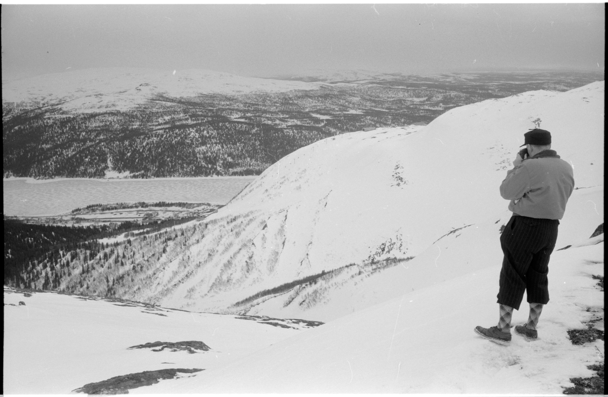 En man fotograferar fjällandskapet.