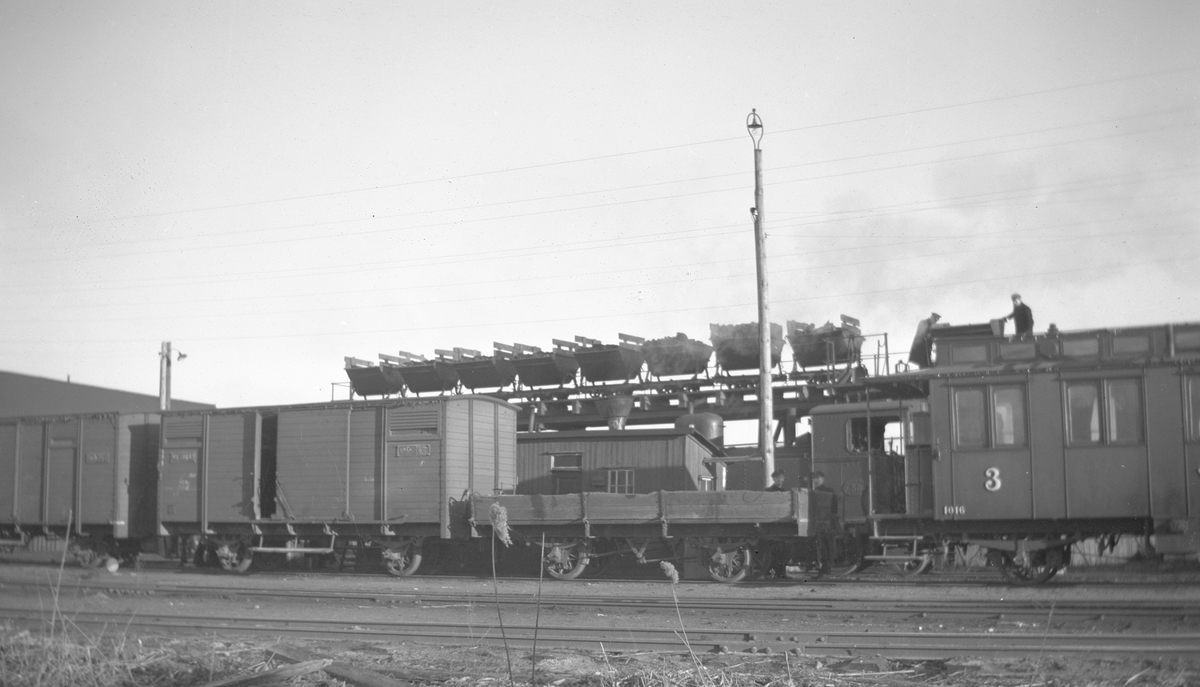 VGJ ,Västergötland - Göteborgs Järnväg. Lok 50. Personvagn 1016 3:e klass. Påfyllning av ångloken stejolsförråd.