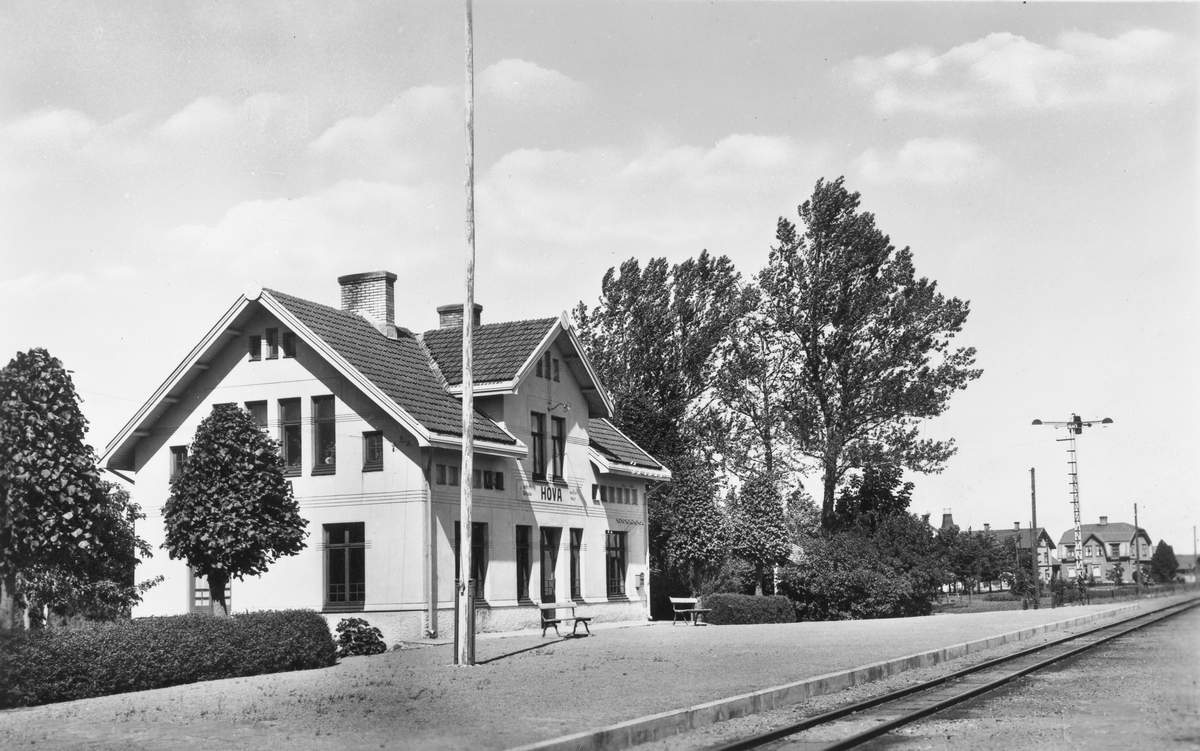 Station anlagd 1910. En och en halvvånings putsat stationshus. 1941 - 42 tillbyggdes två flyglar