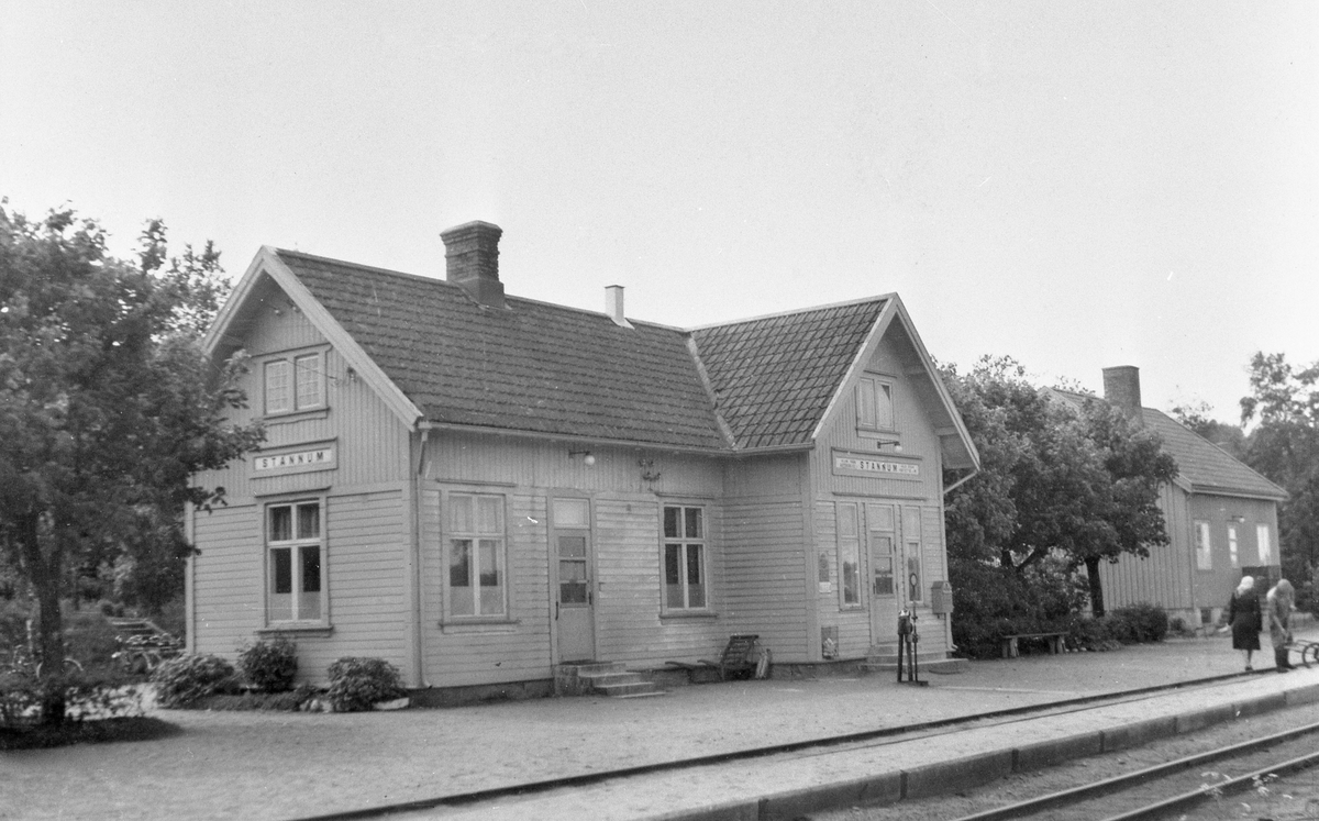 Trafikplats anlagd 1900. Stationshuset, envånings i trä, ombyggdes fullständigt 1946 och samtidigt uppfördes bostadshuset