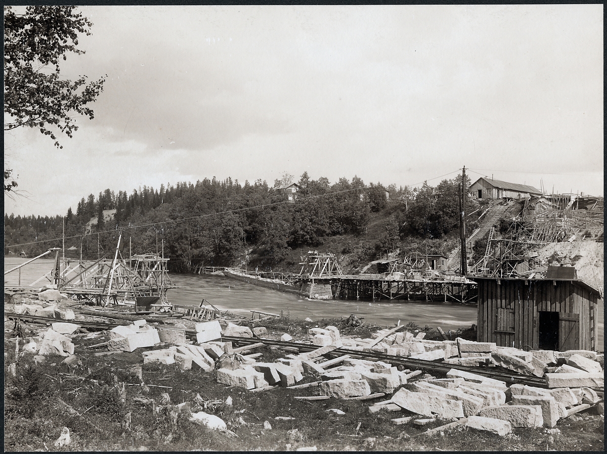 Bygge av bro över Skellefteälven på linjen mellan Klutmark och Slind, då statsbanan Bastuträsk-Skellefteå-Skelleftehamn anlades.