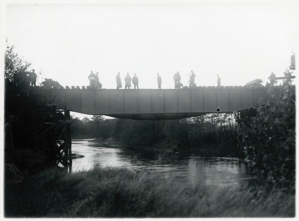 Järnvägsbron över Suseån. Inläggning av överbyggnad. Slipers läggs på.