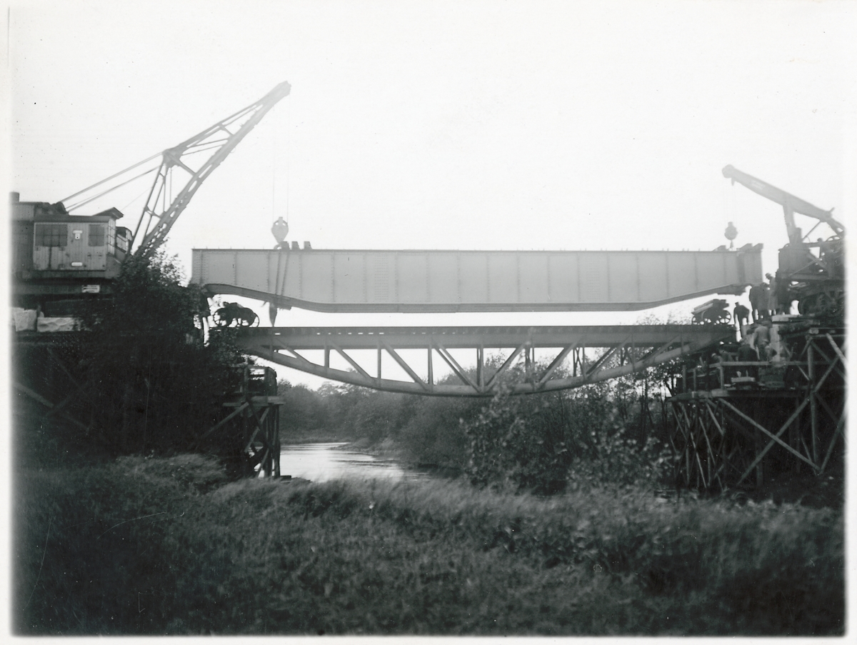 Järnvägsbro över Suseån. Inläggning av överbyggnad.