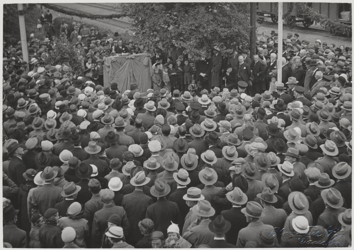 Stadsrådet Kommunikationsmininister Henning Leo talar i samband med invigningen av Statsbanan Malung-Vansbro.